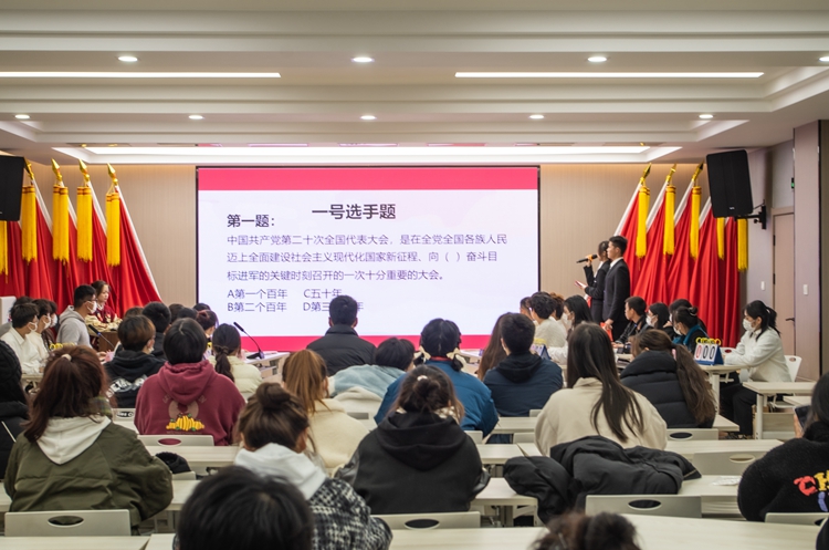 为深入学习贯彻党的二十大精神,进一步增强广大团员青年知党爱党敬党信党的理想信念,11月30日晚,物流与信息工程学院在学校党群服务中心报告厅举办“礼赞二十大,奋进新征程”第七届“先锋杯”党建知识竞赛。学院学生工作负责人、学生支部书记、辅导员等参加活动。