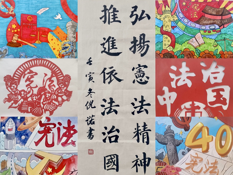为深入学习贯彻习近平法治思想,探索和创新青年大学生法治宣传教育的途径与方法,提高艺术学子的法治意识与道德素养,学院积极开展宪法主题书画、手工等作品征集活动,以艺术创作形式促进法治教育。此次活动得到学院学生的大力支持,共计收到书画、手工作品百余件,同学们根据学习到的宪法知识通过手绘海报、书法、剪纸等多种形式,精心设计、大胆构思,创作出了一批生动形象的法治宣传作品,展现青年大学生出遵纪守法、学法用法的精神风貌。