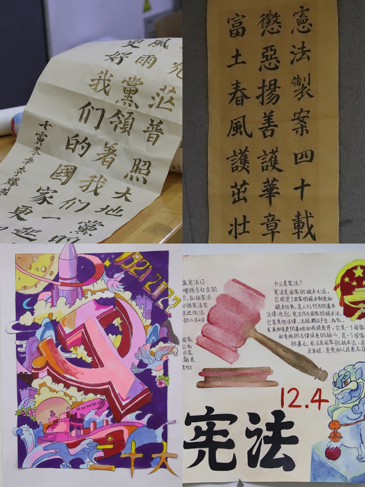 近日,同学们按照省教育厅要求参加宪法学习,通过青少年普法平台开展“学宪法,讲宪法”活动,积极参与争当“宪法小卫士”知识竞答,大一大二同学获得“宪法小卫士”的荣誉称号。同时,各班级召开了“宪法伴我成长”主题班会,通过微视频、线上知识竞赛等形式向同学们讲述了宪法相关知识。此外,学生自己动手设计图文并茂的主题手抄报、书法作品、短视频宣讲等,在收集资料和制作过程中主动学习有关法律知识,树立法治理念,调动学生学法的积极性,争做新时代宪法知识宣传小能手。