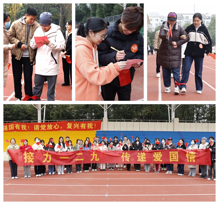 为增强青年大学生的爱国意识,培养同学们的爱国主义精神,牢记历史,肩负使命,勇往直前。旅游与公共管理学院于2022年12月8日在操场举办了“接力一二九,传递爱国情”为主题的知识答题接力跑,展现大学生青春活力,用奔跑表达对历史的纪念和对祖国的浓浓爱意。