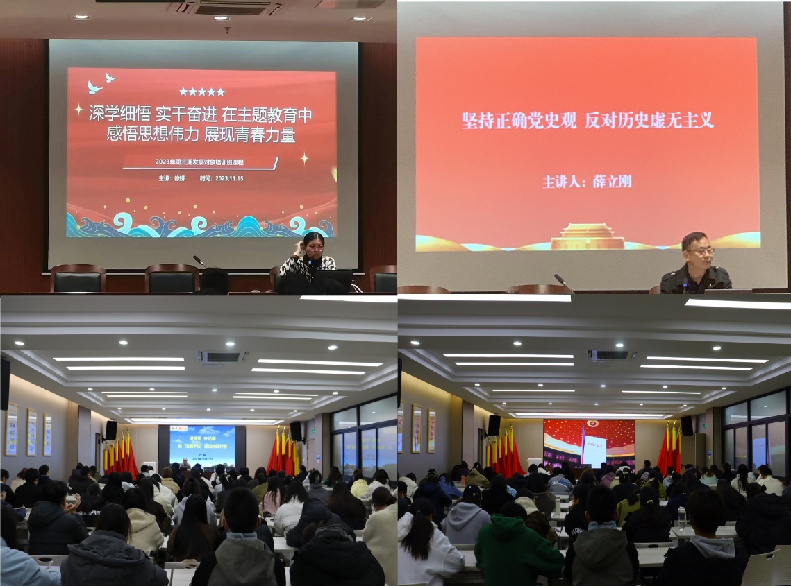 培训期间,学校纪委办主任亓嘉为培训班学员作题为《讲规矩守纪律做“清廉学校”建设的践行者》的专题辅导报告。艺术与时尚创意学院党总支副书记徐妍、马克思主义学院副教授薛立刚分别作《深学细悟实干奋进在主题教育中感悟思想伟力展现青春力量》、《坚持正确党史观,反对历史虚无主义》专题报告。