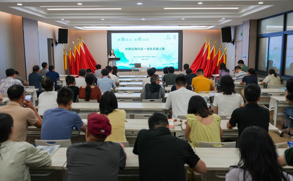 今年是“绿水青山就是金山银山”理念提出20周年,为进一步推动专业群绿色化、数智化转型升级,提升师生绿色低碳素养,5月22日下午,我校智能制造与电梯学院与旅游管理学院联合举办“中国式现代化·绿色发展之路”专题党课讲座。本次讲座由湖州市委党校副校长杨振华教授主讲,两学院全体教师党员90余人参加学习。